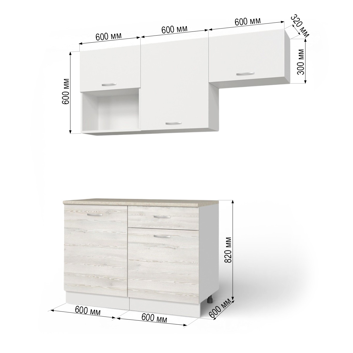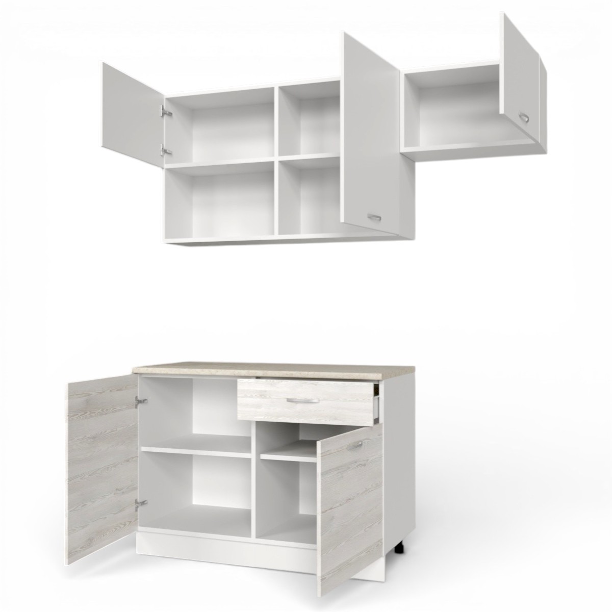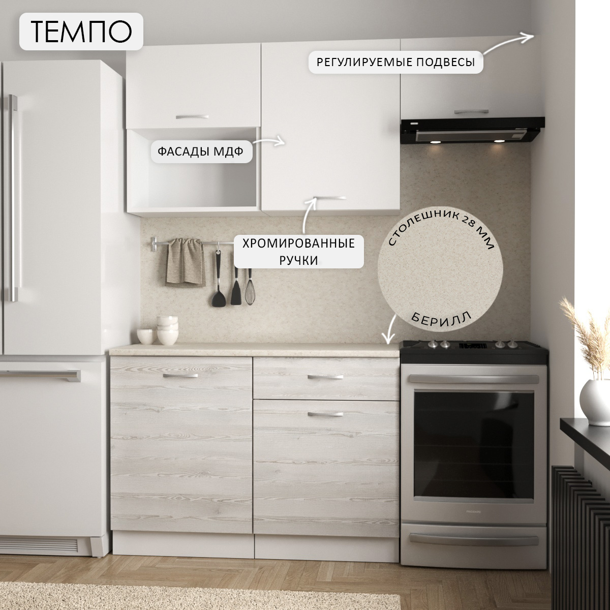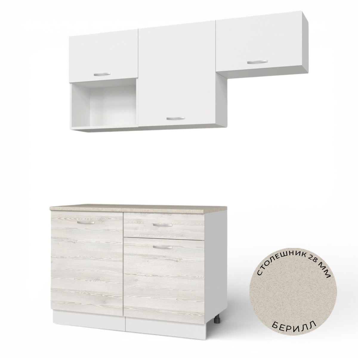 Кухонный гарнитур Темпо №3 Белый/Сосна Лофт/Белый жемчуг/столеш. Берилл бежевый (без мойки) 1,2 м
