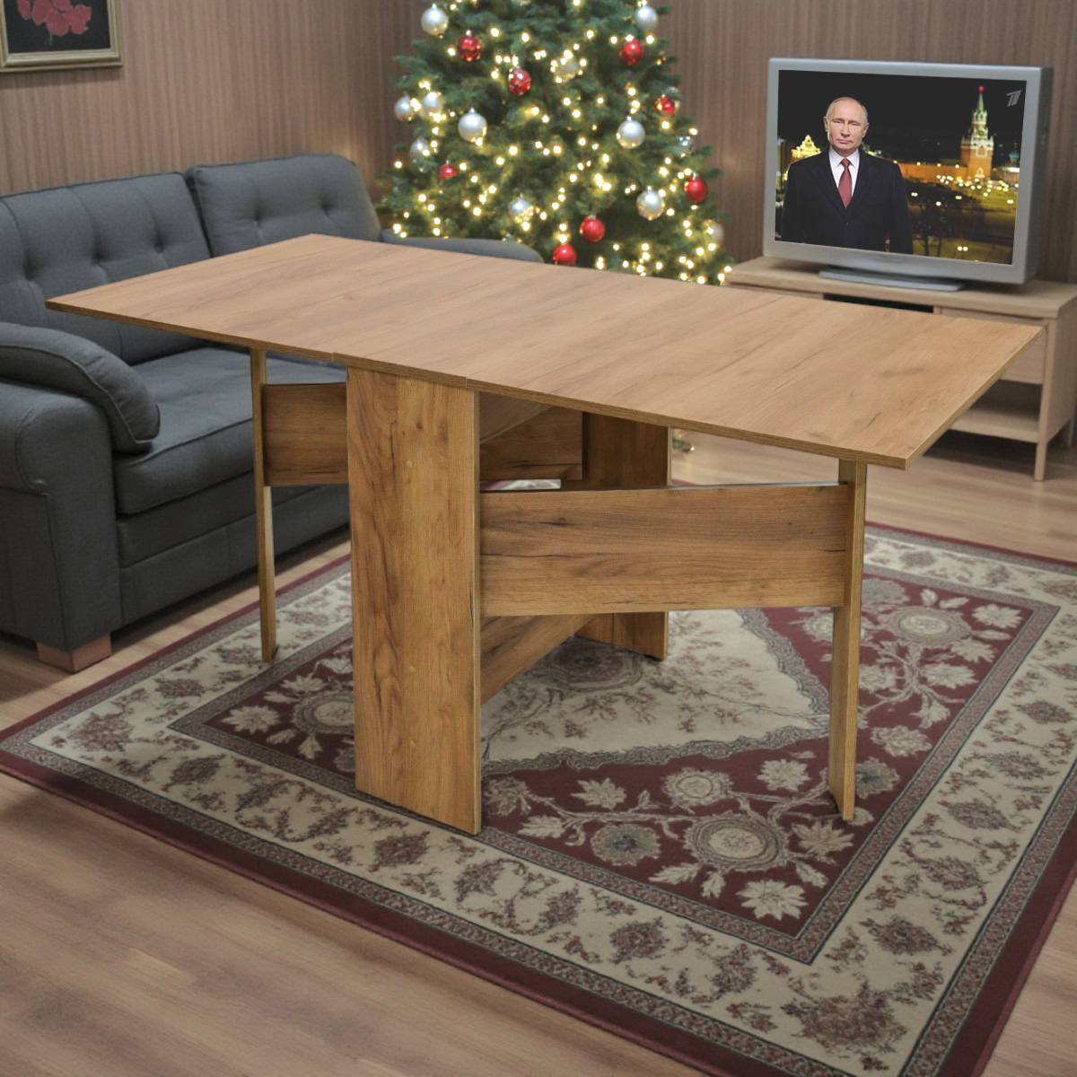 Стол с трансф. крышками БН-204 Дуб крафт табачный 1500*700