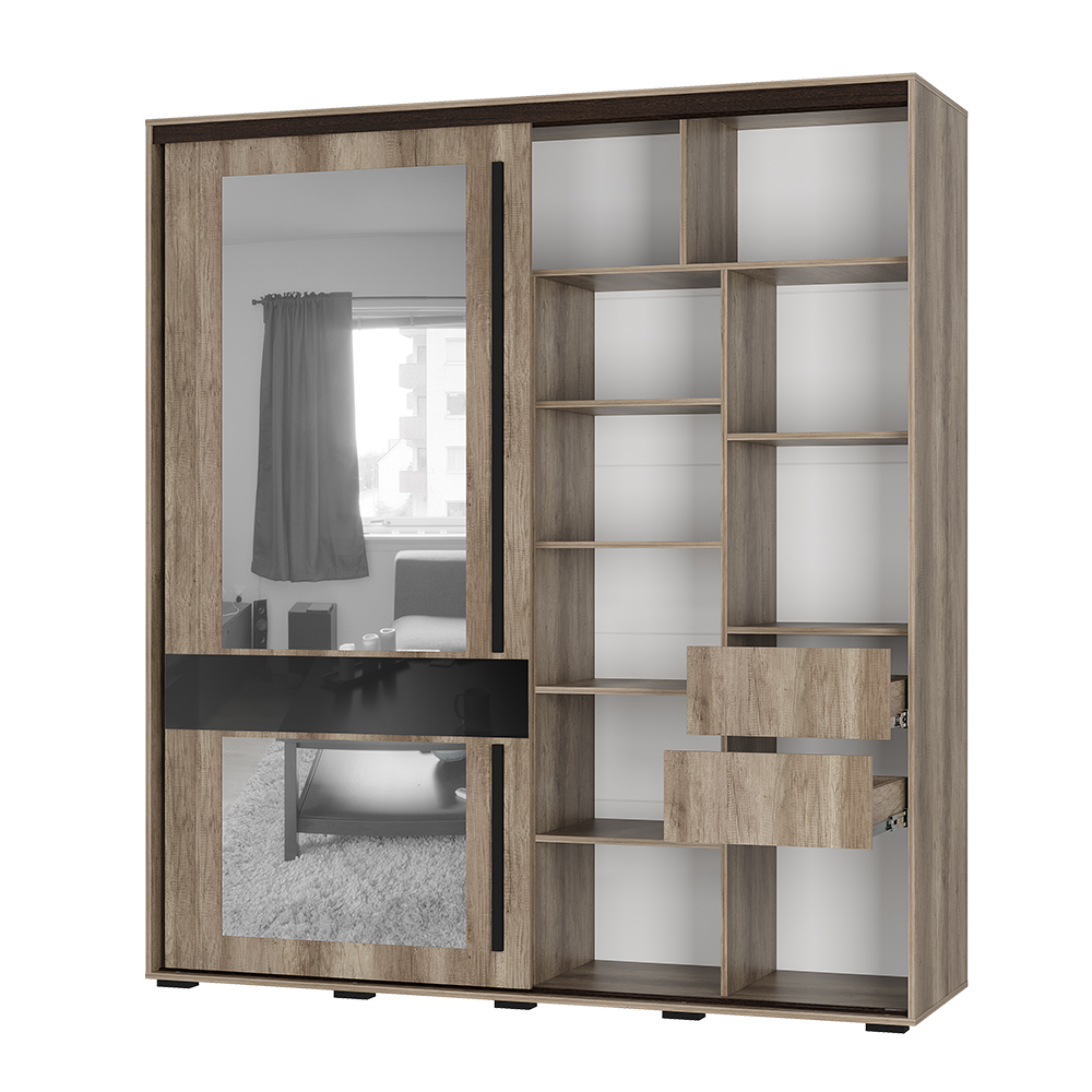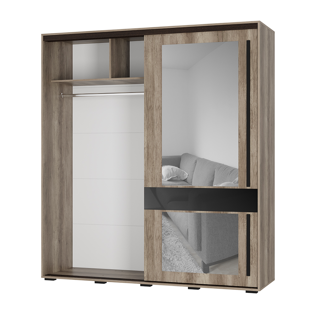 Шкаф-купе «Крафт-8» — идеальное сочетание натуральной древесной текстуры и элегантных черных акцентов. Этот шкаф станет центральным элементом интерьера, добавив ему тепла и современного шика.